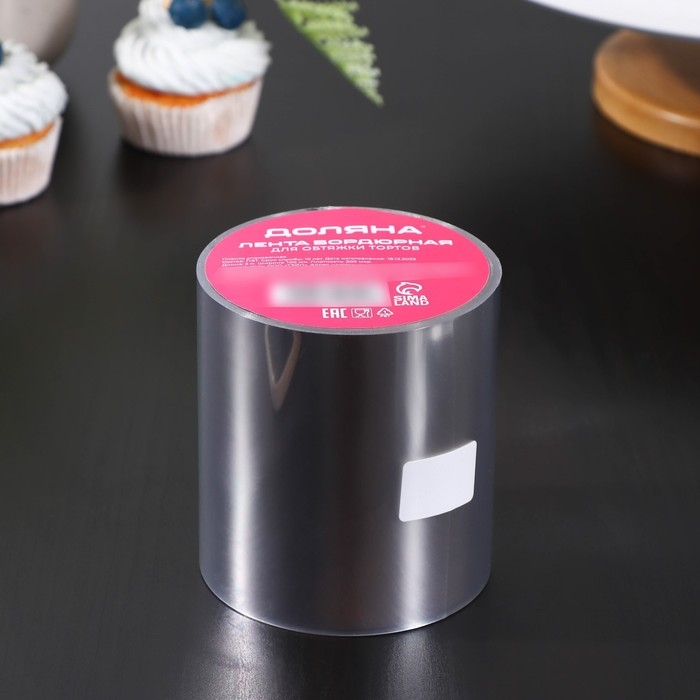 Лента ацетатная для обтяжки тортов Доляна, 200 мкр×100 мм×5 м, цвет прозрачный