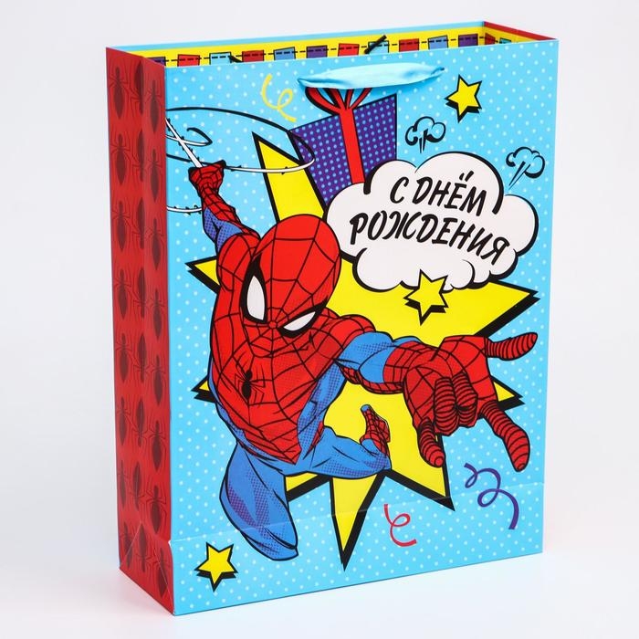 Пакет подарочный "С Днем рождения" 31х40х11 см, упаковка, Человек-паук