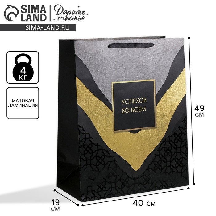 Пакет подарочный ламинированный, упаковка, «Успехов во всем», XL 49 х 40 х 19 см