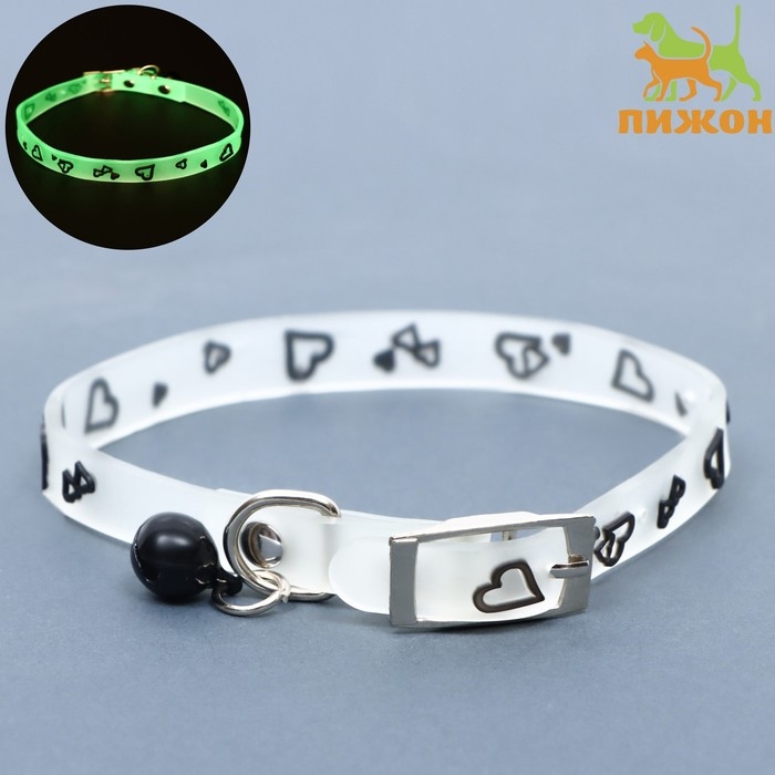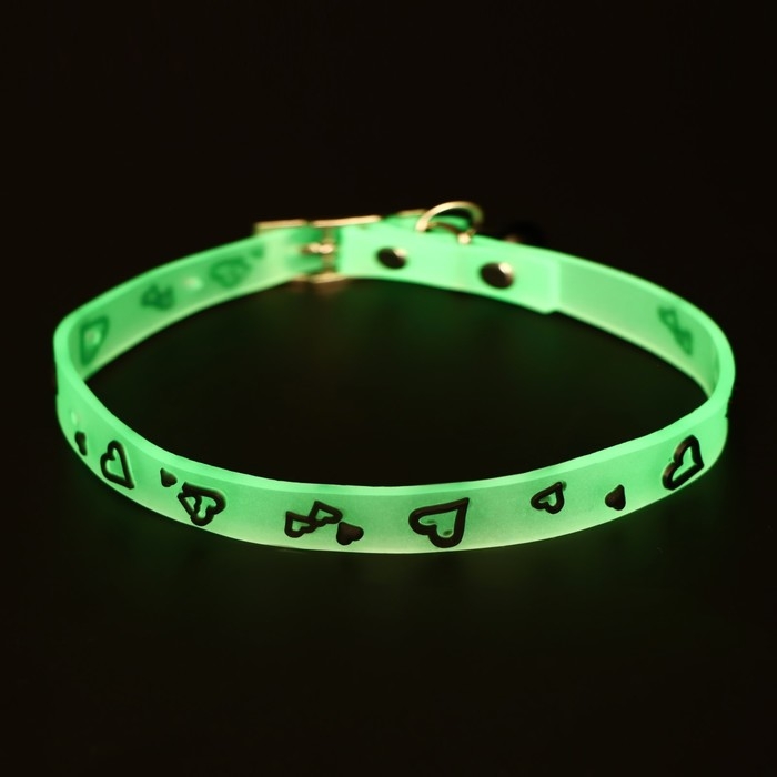 Ошейник, светящийся в темноте, "Нежные сердца" (люминесцентный), 30 х 1 см, ОШ 19-26 см, микс