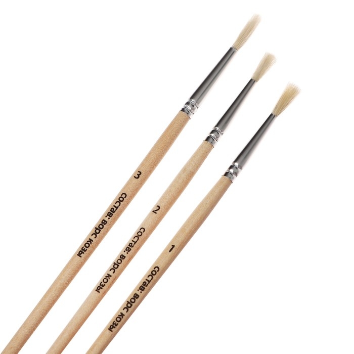 Набор кистей коза, 3 штуки (№1, 2, 3), круглые, с деревянными ручками, в блистере