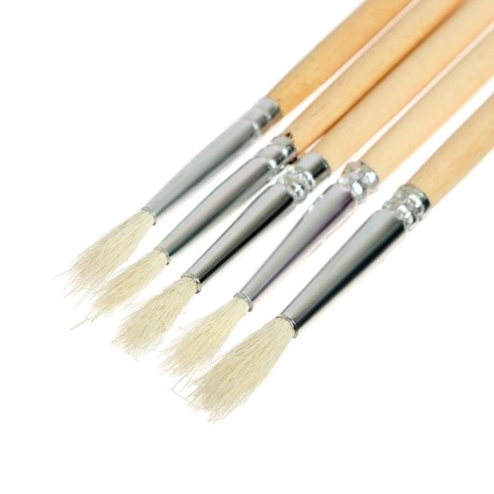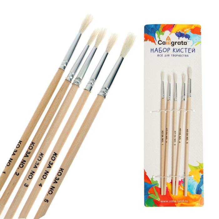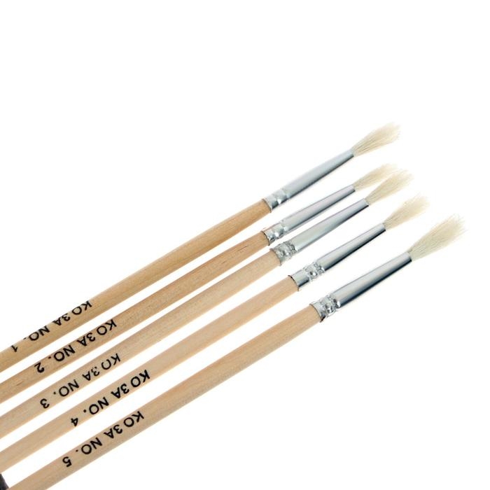 Набор кистей коза, 5 штук (№1, 2, 3, 4, 5), круглые, с деревянными ручками, в блистере