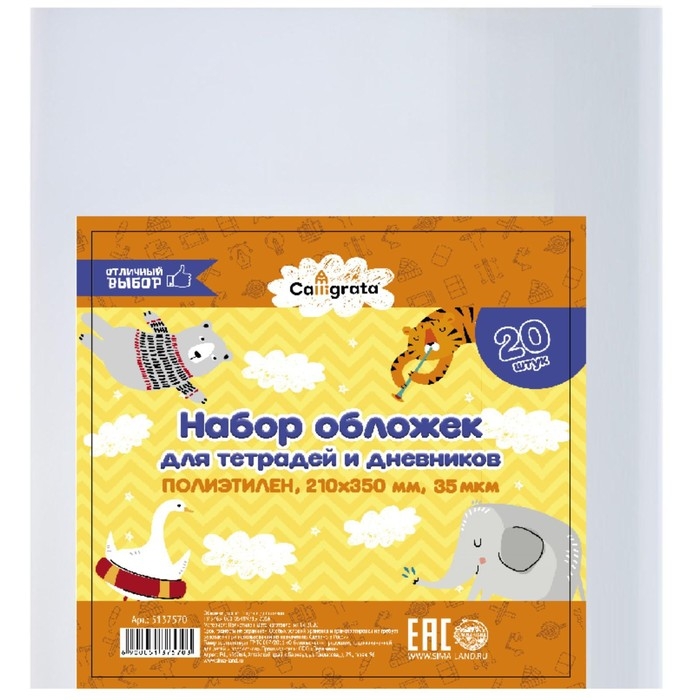 Набор обложек ПЭ 20 штук, 210 х 350 мм, 35 мкм, для тетрадей и дневников (в мягкой обложке)