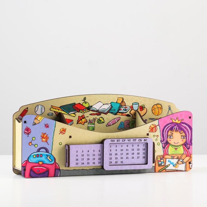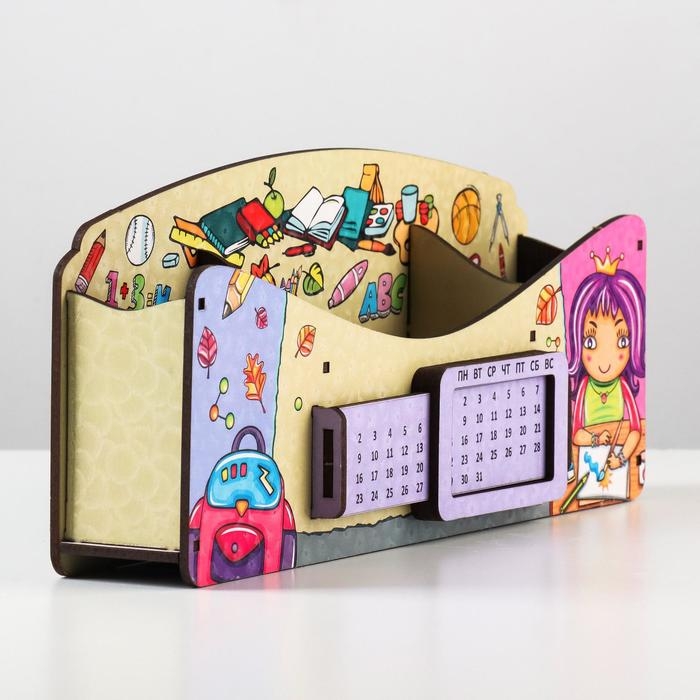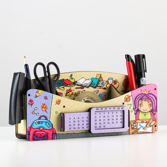 Органайзер для канцелярских предметов "Школа удобств", вечный календарь, цветной, жёлтый