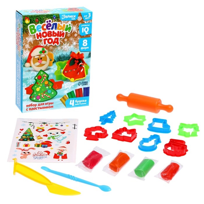 Набор для игры с пластилином «Весёлый Новый год», 8 форм, 4 бруска пластилина