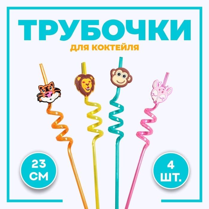 Трубочки для коктейля «Зоопарк», набор 6 шт.