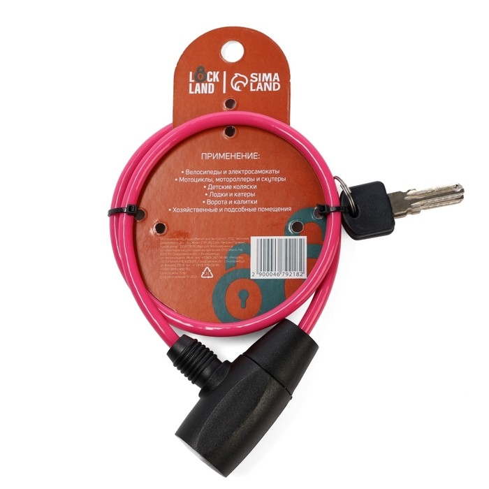 Замок навесной велосипедный LOCKLAND, 6х650 мм, перфорированный ключ, розовый