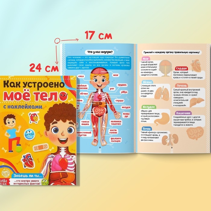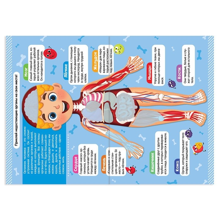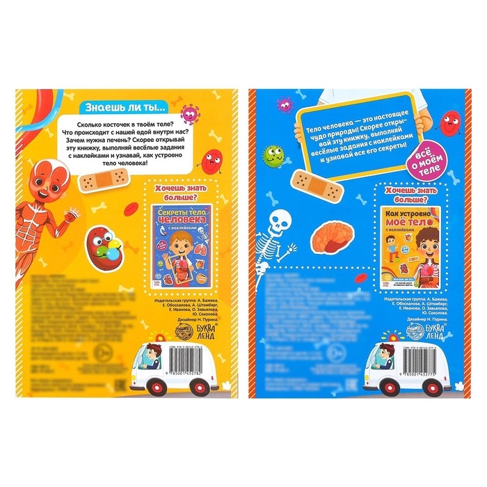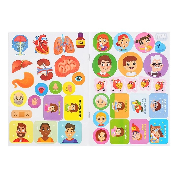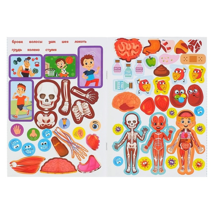 Набор книжек с наклейками познакомит малышей с человеческим телом. Занимаясь с этими книгами, ребёнок узнает, как работают разные органы и системы. А закрепить знания помогут весёлые и интересные задания: их нужно выполнить с помощью наклеек.