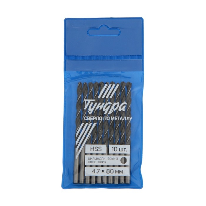 Сверло по металлу ТУНДРА, HSS, цилиндрический хвостовик, 4.7 х 80 мм, 10 шт.