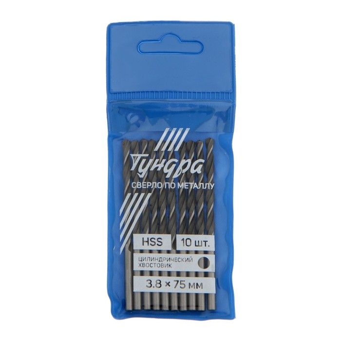Сверло по металлу ТУНДРА, HSS, цилиндрический хвостовик, 3.8 х 75 мм, 10 шт.