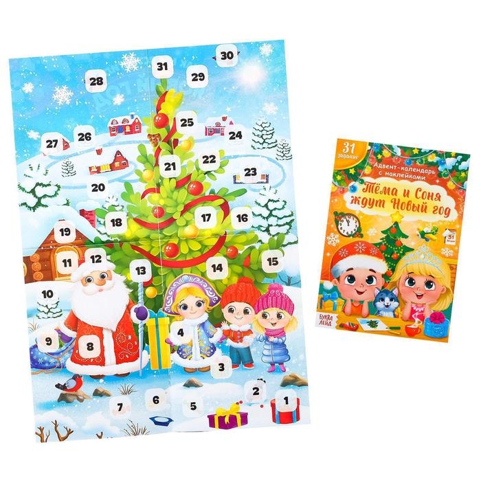 Книжка с наклейками «Адвент- календарь. Тёма и Соня ждут Новый год», 20 стр.