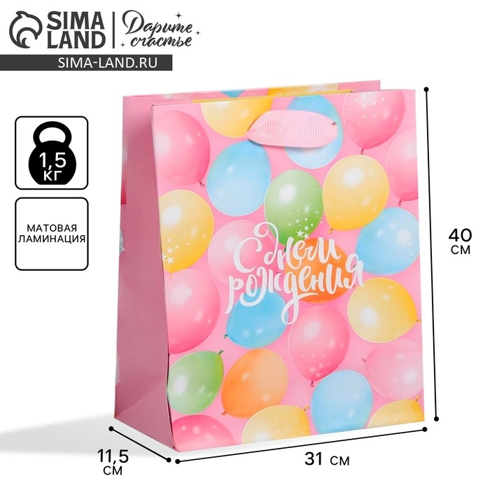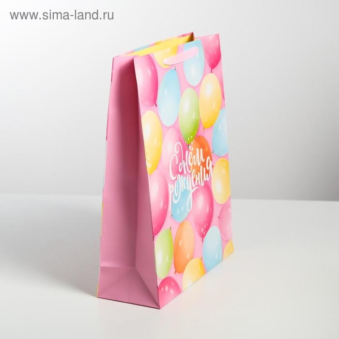 Пакет подарочный ламинированный вертикальный, упаковка, «С Днём Рождения!», L 31 х 40 х 11,5 см