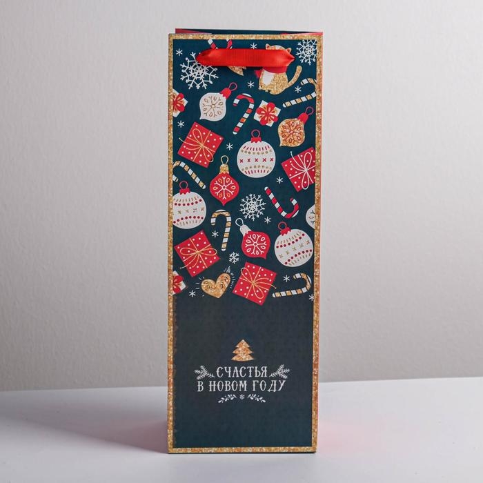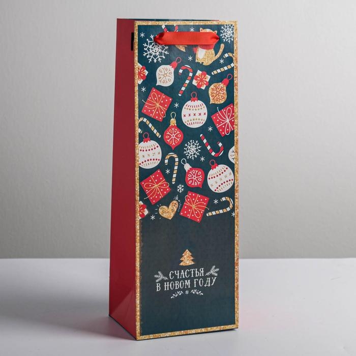 Пакет под бутылку «Счастья в Новом году», 13 х 36 х 10 см , Новый год