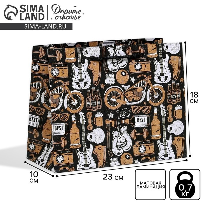 Пакет подарочный ламинированный горизонтальный, упаковка, «For the best man», MS 23 х 18 х 10 см