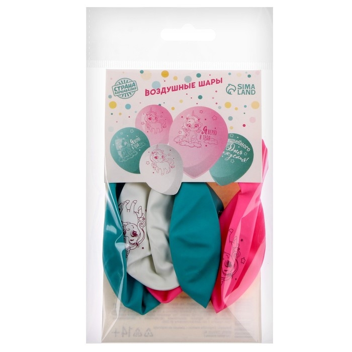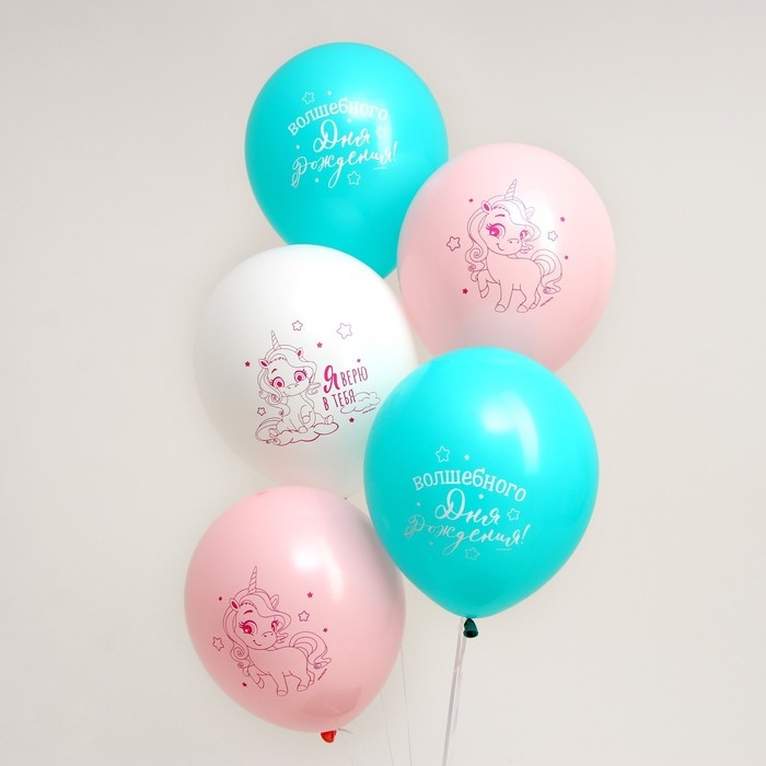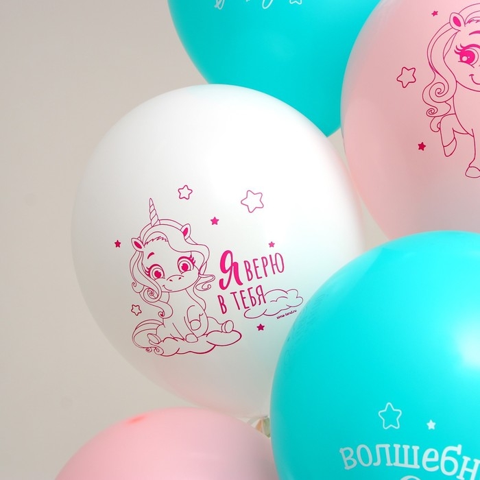 Воздушный шар латексный 12" «Волшебство сияет», единорожка, 5 шт.