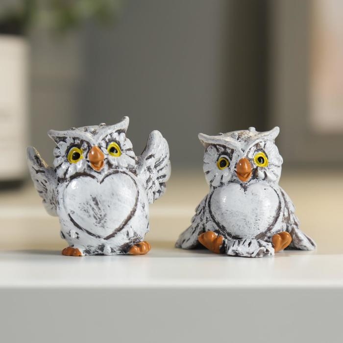 Сувенир полистоун "Филин с сердечком-пузиком" МИКС 4х4,1х3 см