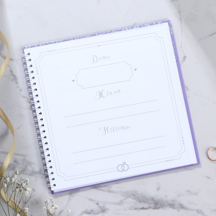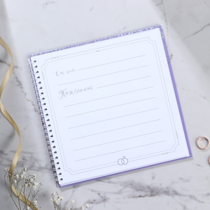 Книга пожеланий на свадьбу «Фиолетовая с блёстками», на пружине.