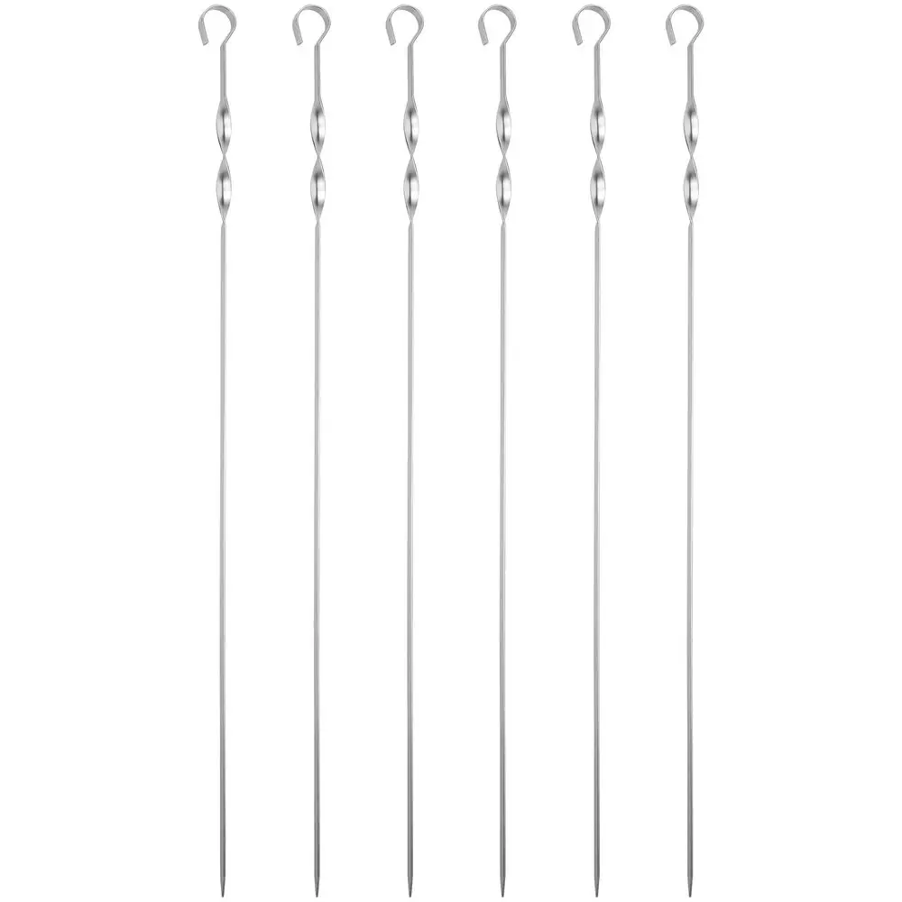 Длинные шампуры подходят для мангалов шириной до 40 см. Спираль у рукоятки позволяет фиксировать шампур при переворачивании шашлыка во время приготовления.