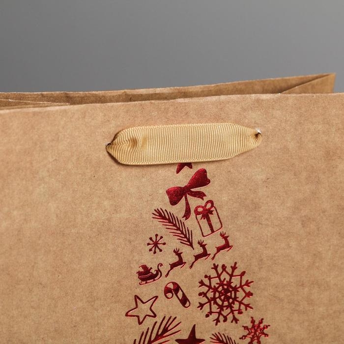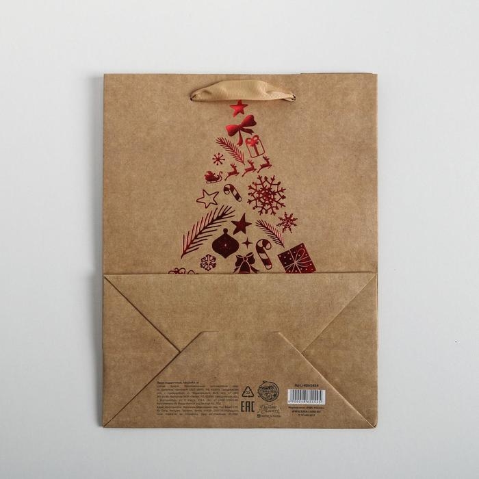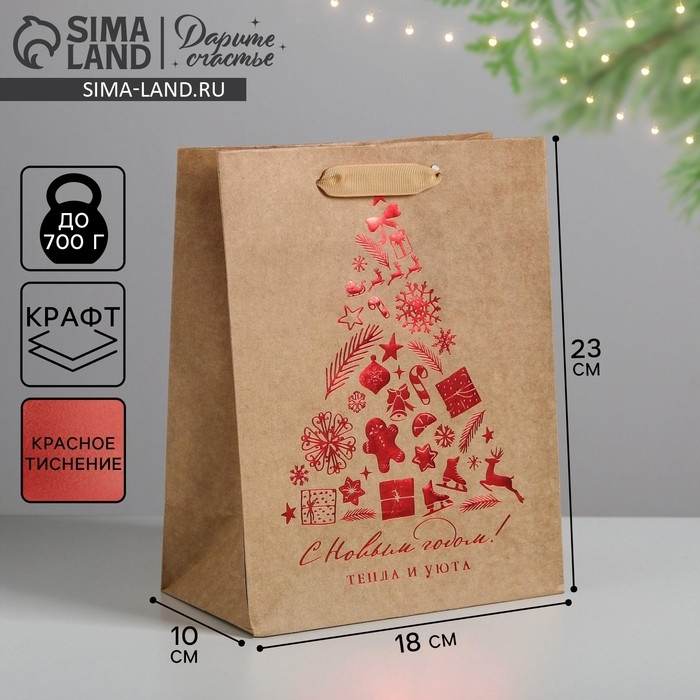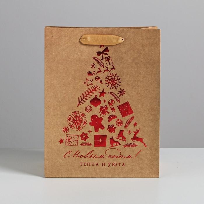 Пакет подарочный новогодний крафтовый вертикальный «Тепла и уюта», MS 18 х 23 х 10 см, Новый год