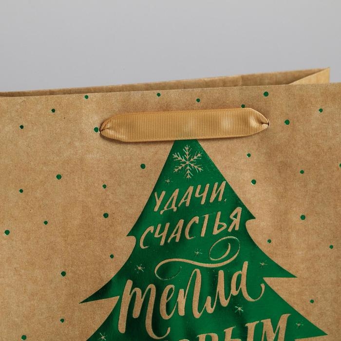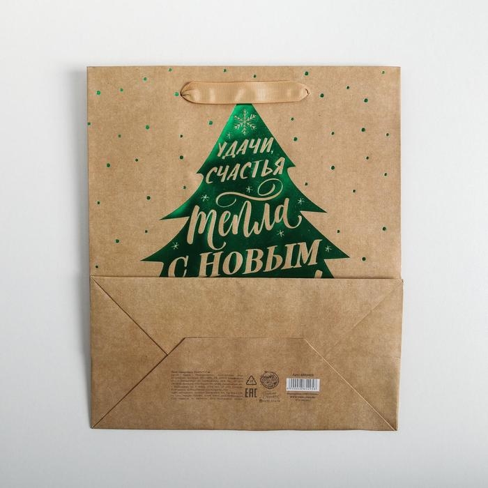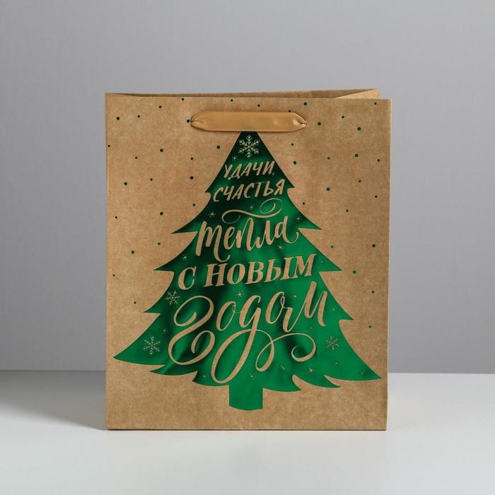 Пакет подарочный новогодний крафтовый вертикальный «Ёлочка нарядная», ML 23 х 27 х 11.5 см, Новый год