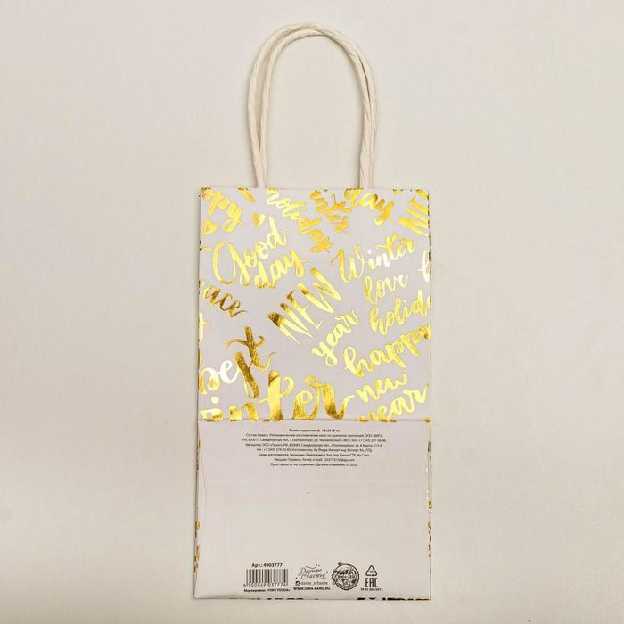 Пакет подарочный новогодний крафтовый «Best winter», 12 х 21 х 9 см, Новый год