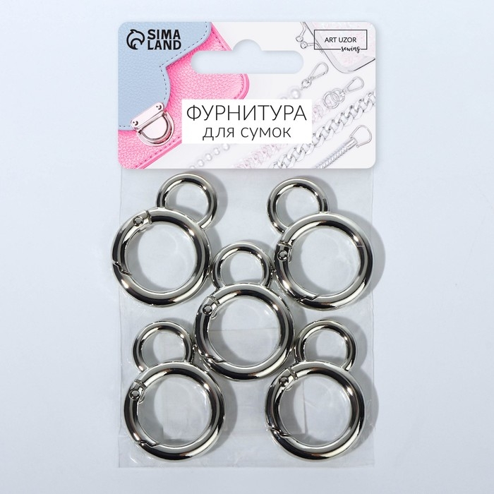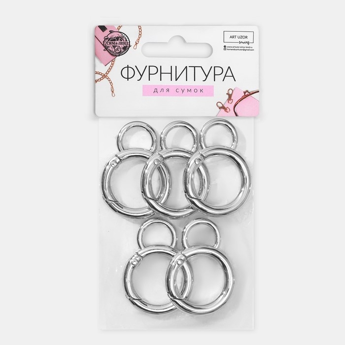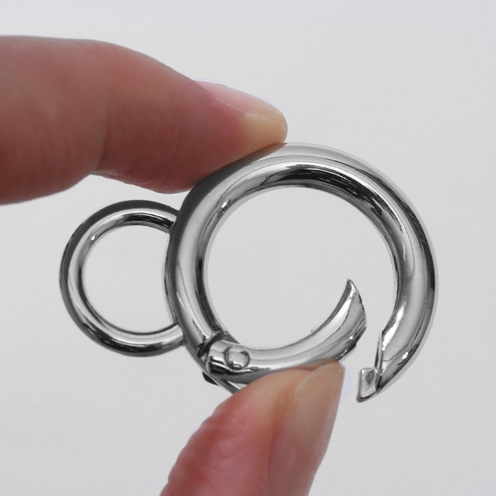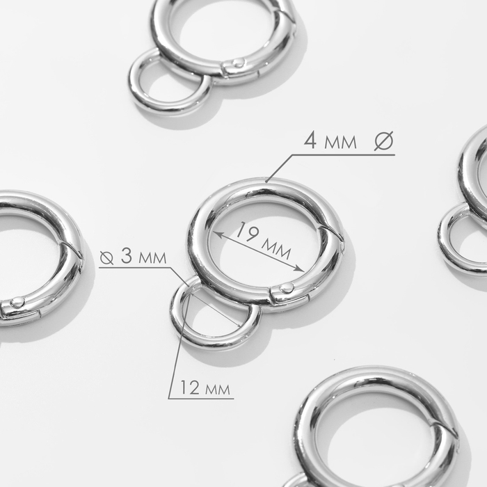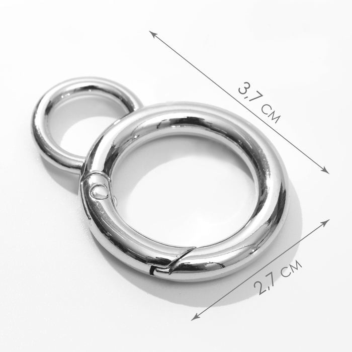 Кольцо-карабин, 37 мм, d = 27/19 мм, толщина - 4 мм, с креплением 12 × 3 мм, 5 шт, цвет серебряный