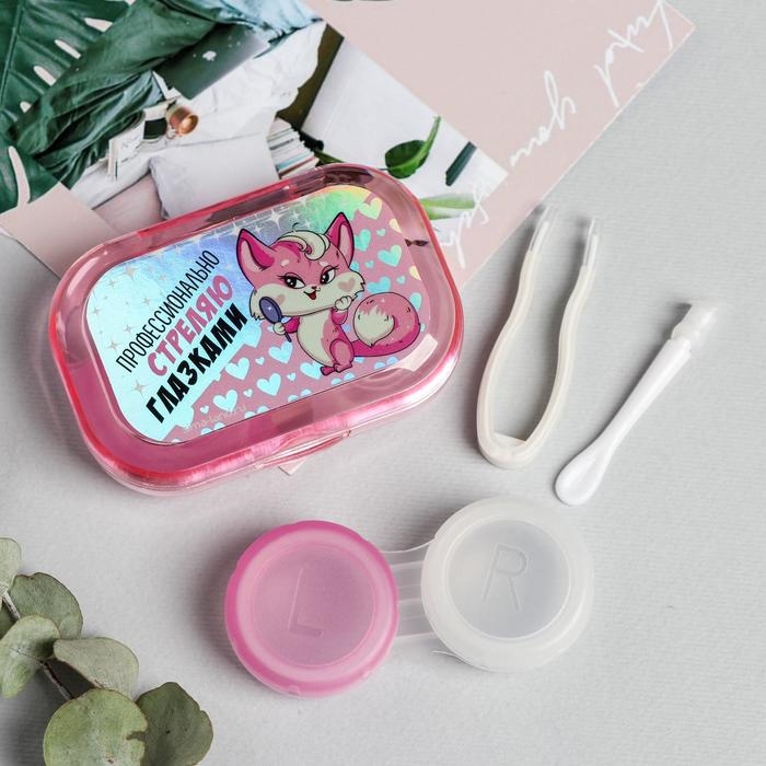 Контейнер для линз в наборе "Киса", голография, 6,5 см × 4,5 см