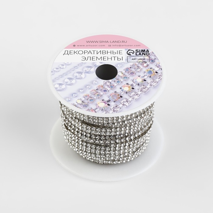 Стразы термоклеевые, ширина - 15 мм, 4,5 ± 0,5 м, цвет серебряный