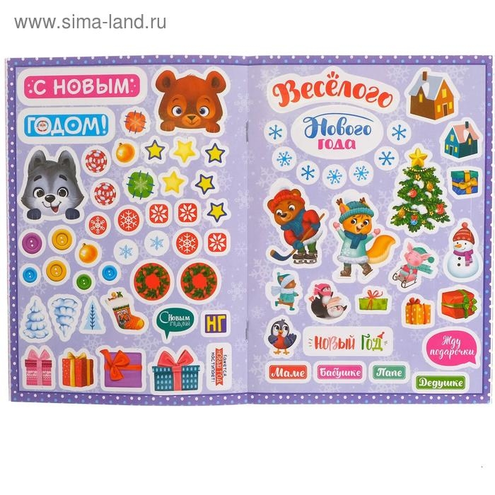 Книжка с наклейками поможет скоротать время в ожидании праздника и смастерить оригинальные открытки для близких.