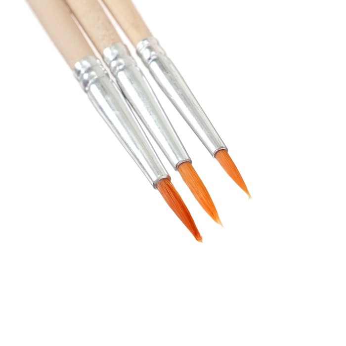Набор кистей синтетика круглые 3 штуки (№1,3,4) с деревянными ручками в пакете