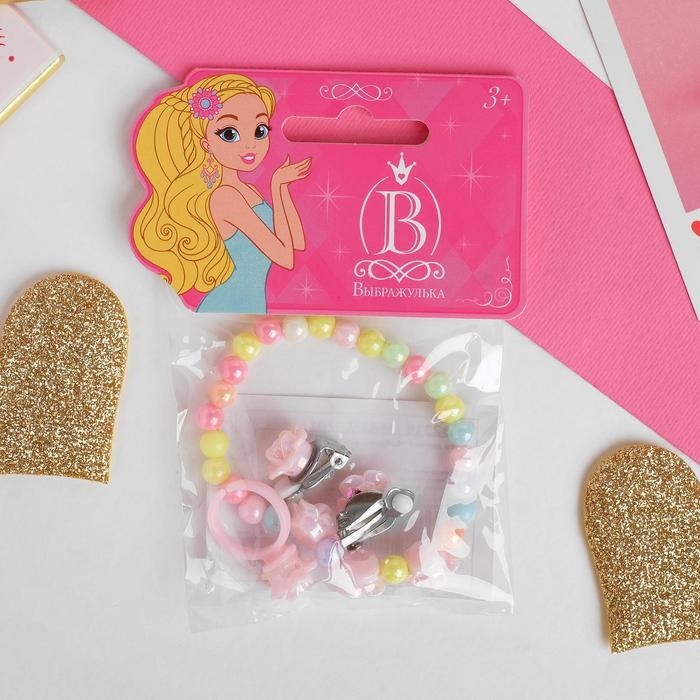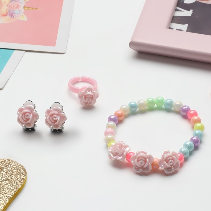 Набор детский «Выбражулька» 3 предмета: клипсы, браслет, кольцо, розы, цветной