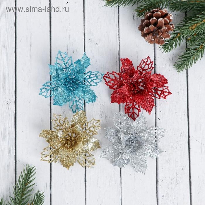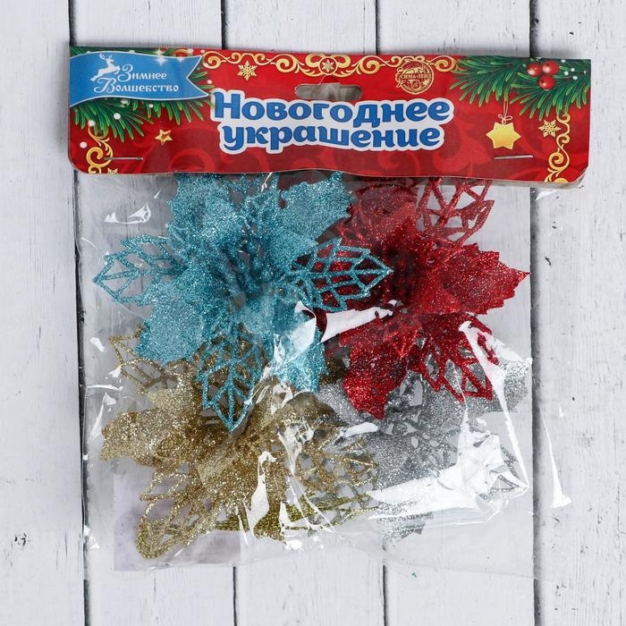 Украшение ёлочное "Цветы ажурные - блеск" (набор 4 шт) 8х8 см, микс