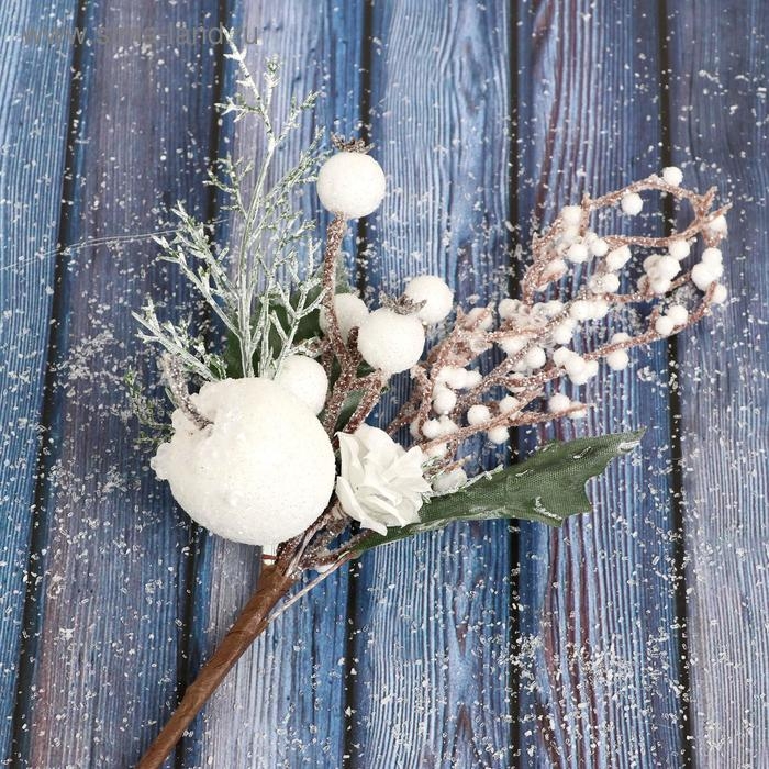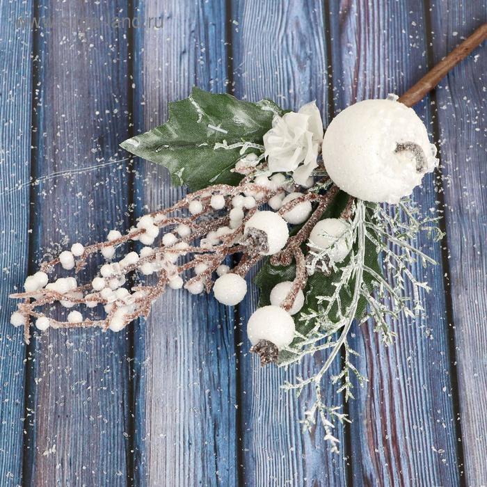 Декор "Зимнее очарование" яблоко ягоды цветок в белом, 25 см