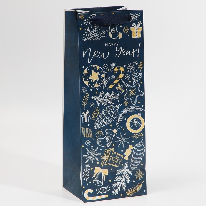 Пакет под бутылку «Happy New Year», 13 х 36 х 10 см, Новый год