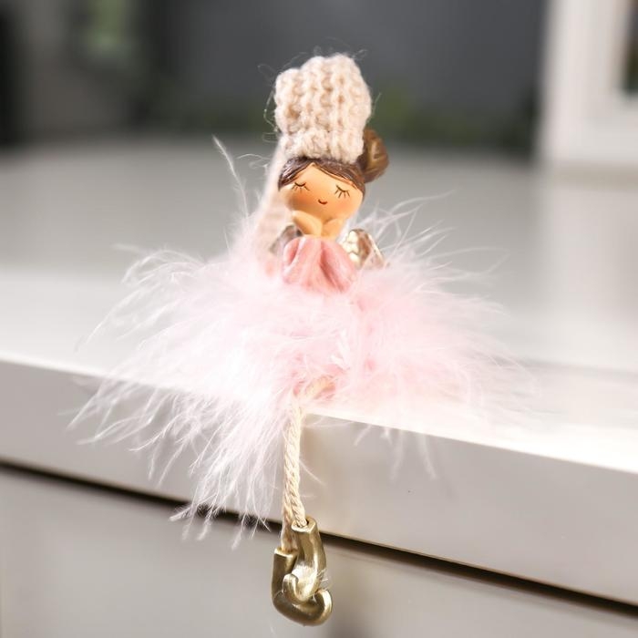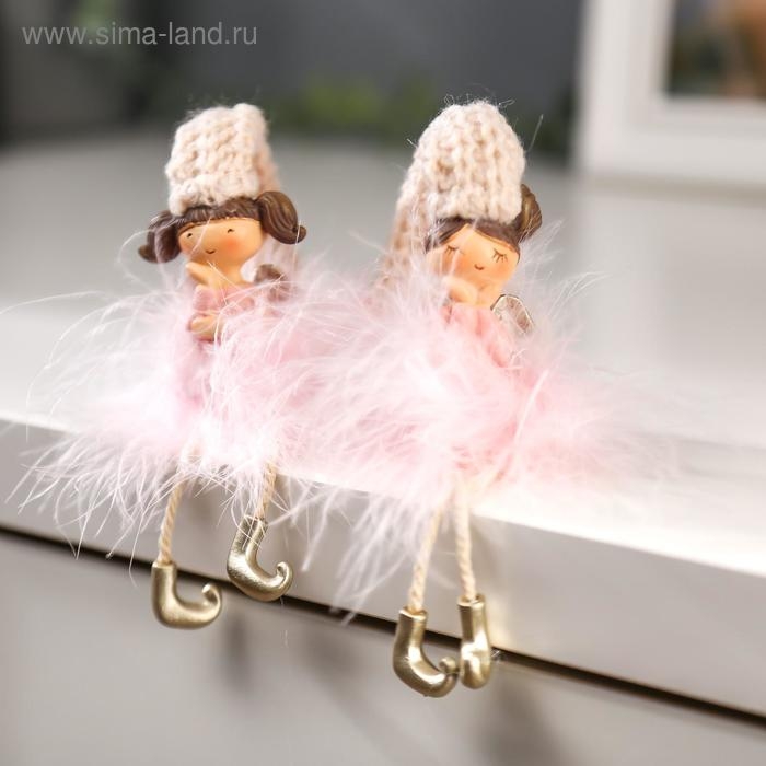 Сувенир полистоун "Ангелочек-стесняшка в розовой пуховой юбке" МИКС 18х3,5х4 см