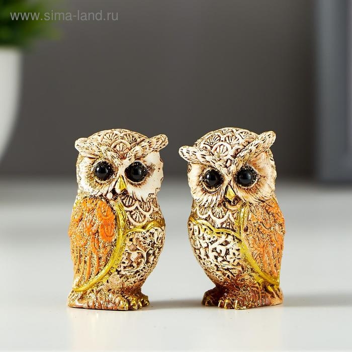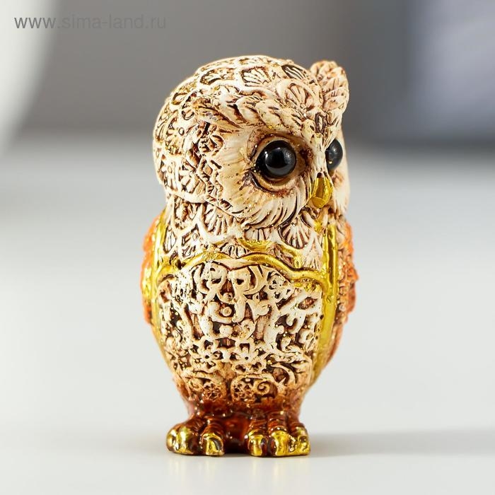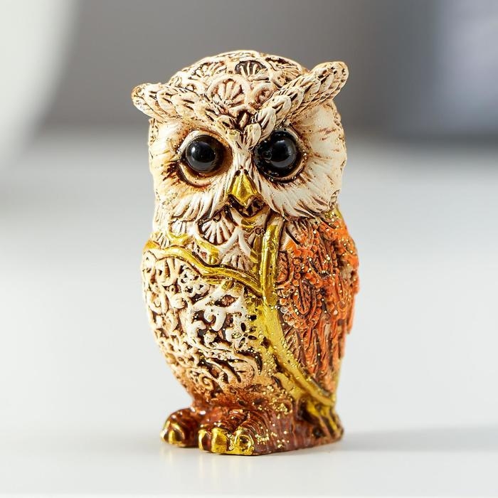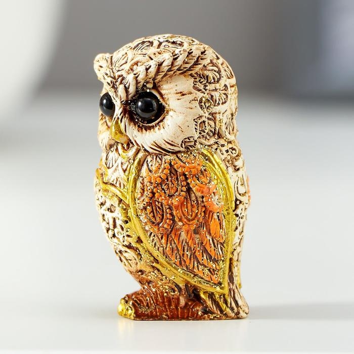 Сувенир полистоун "Филин беж с оранжевыми крыльями" МИКС 5х2,8х3 см