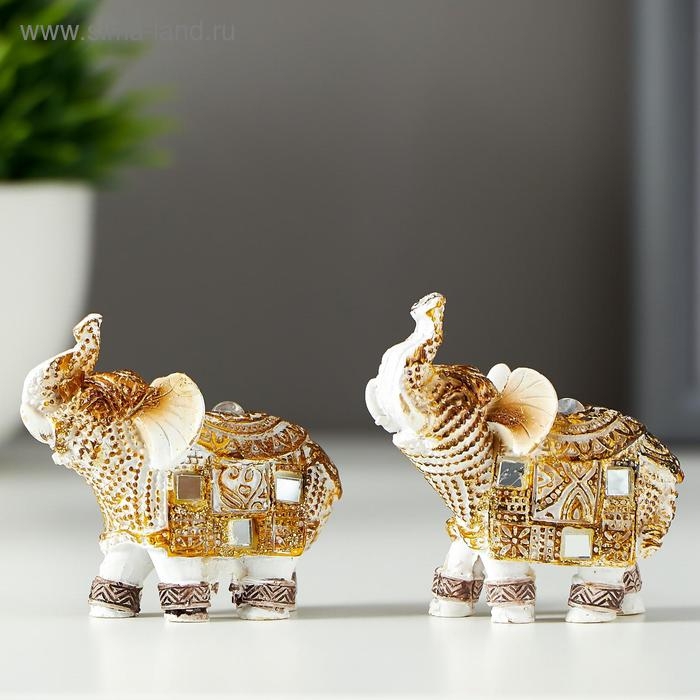 Сувенир полистоун "Белый слоник с попоной из арабского ковра" МИКС 5,5х5,5х2,2 см