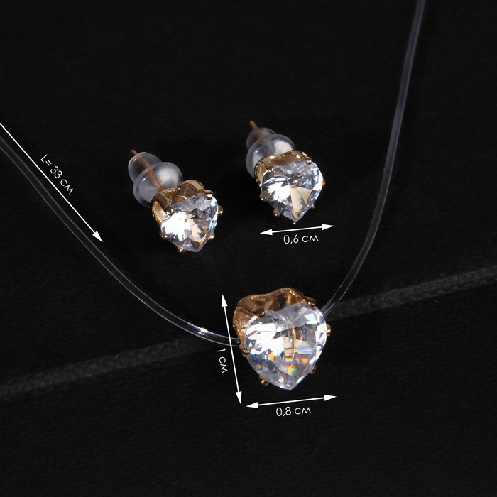 Гарнитур 2 предмета: серьги, кулон «На леске» сердечко, цвет белый в золоте, 30 см