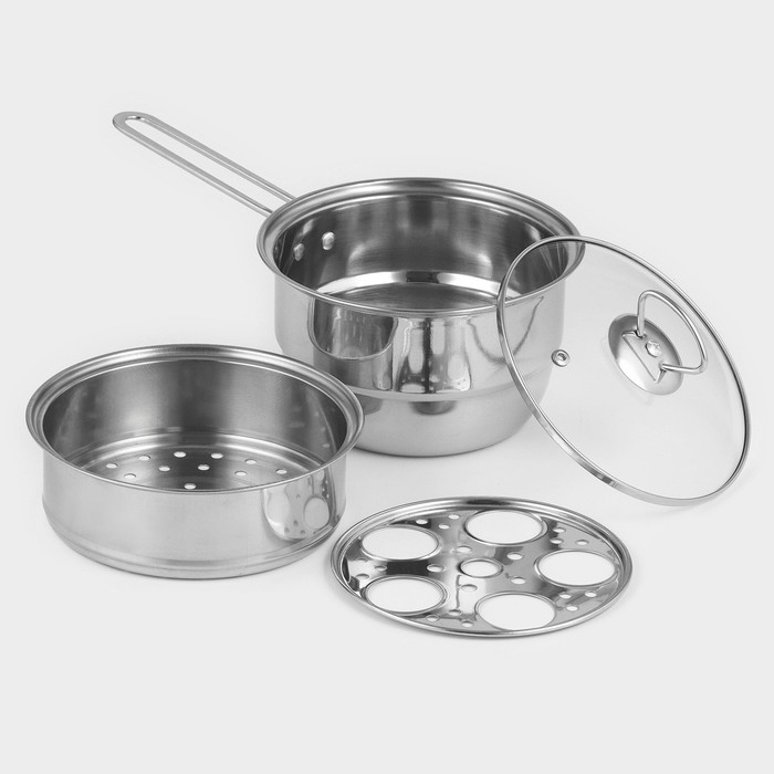 Пароварка-яйцеварка из нержавеющей стали «Вейлер», 18×22 см, стеклянная крышка, цвет хромированный