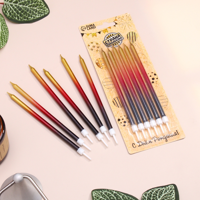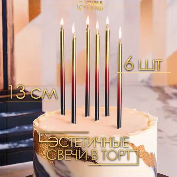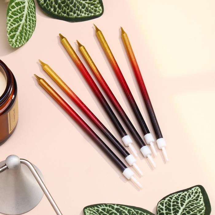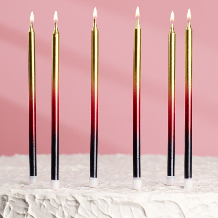 Свечи в торт "Ройс. Градиент", 6 шт, высокие, 13 см, чёрный, бордовый, золотой