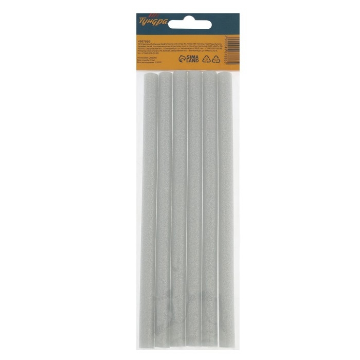 Клеевые стержни ТУНДРА, 11 х 200 мм, серебристые с блестками, 6 шт.