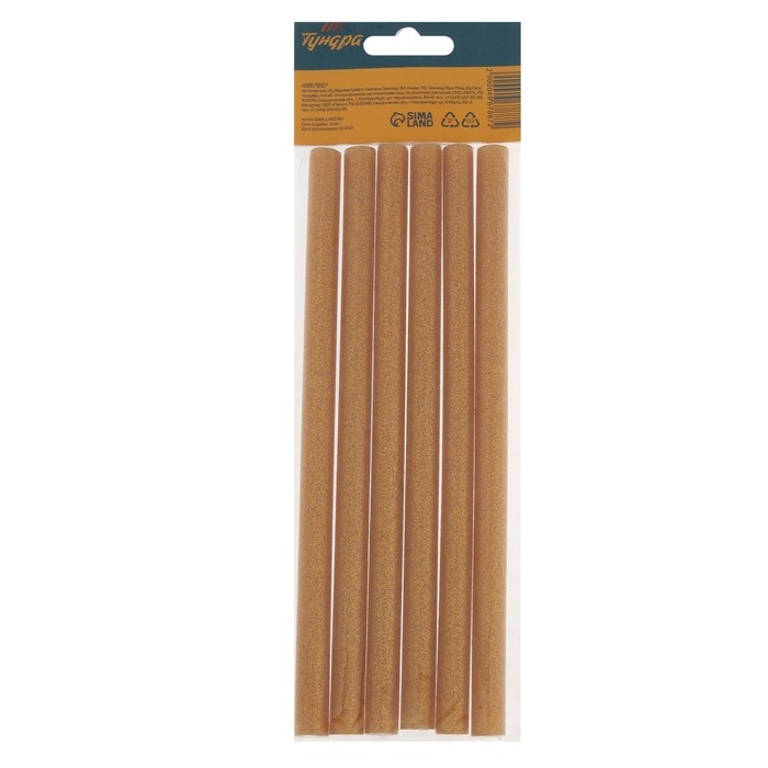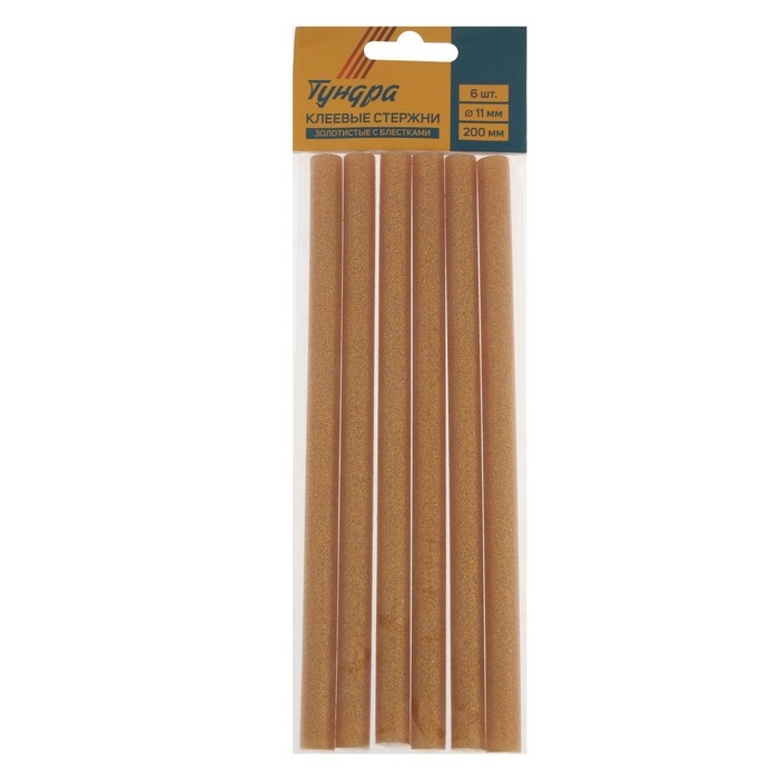 Клеевые стержни ТУНДРА, 11 х 200 мм, золотистые с блестками, 6 шт.