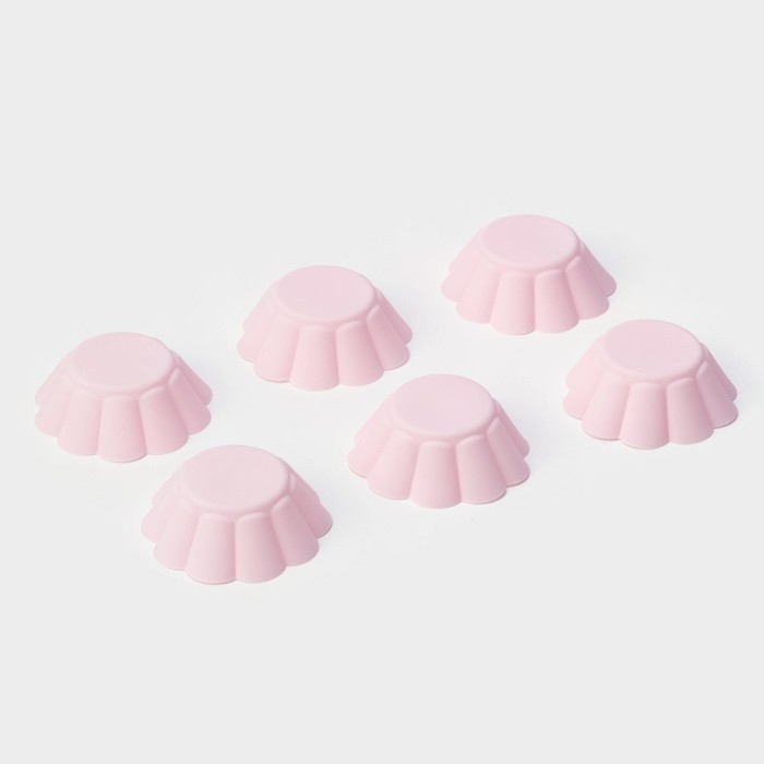 Набор форм для выпечки Доляна «Ромашки», силикон, 7×3 см, 6 шт, цвет розовый