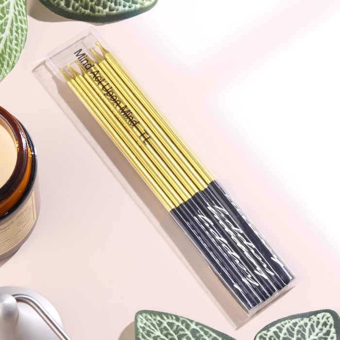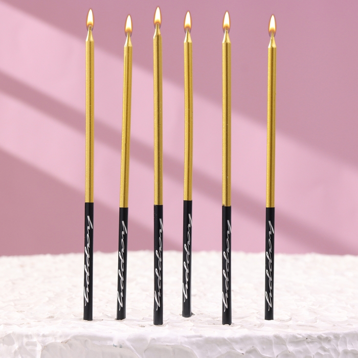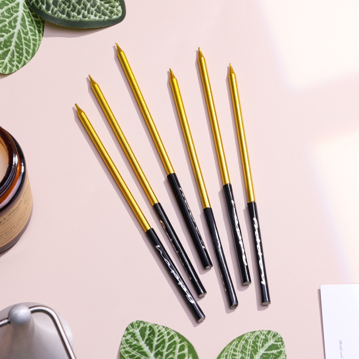 Свечи в торт "Праздник", 6 шт, 14,5 см, золото с чёрным