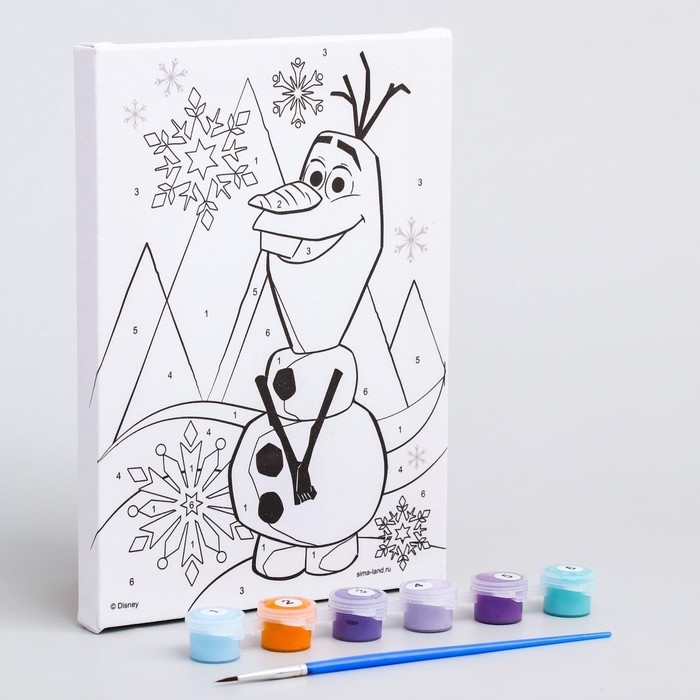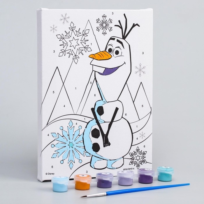 Картина по номерам для детей "Олаф" 21х15 см, Холодное сердце понравится и детям, и взрослым.