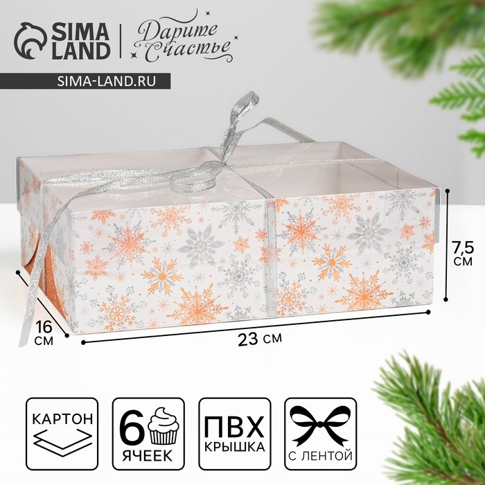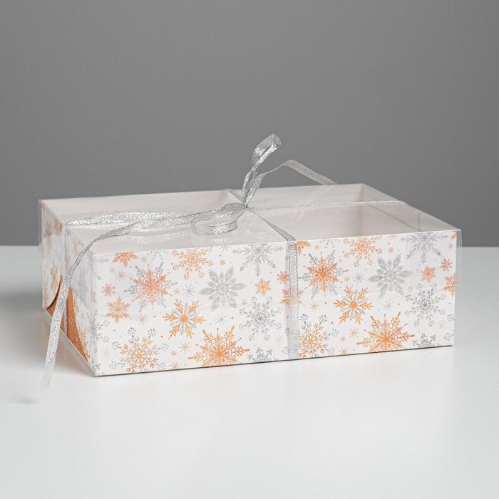Коробка для капкейка «Снежинки», 23 х 16 х 7.5 см, Новый год