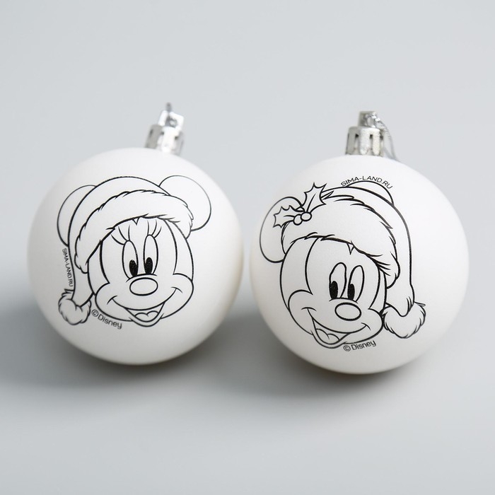 Новый год. Набор ёлочных шаров под раскраску, 2 штуки, 5.5 см, Микки Маус