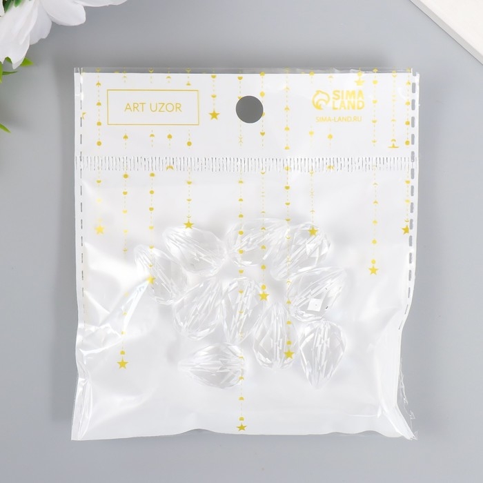 Бусины для творчества пластик "Кристалл-капля" набор 20 гр 2х1,3х1,3 см