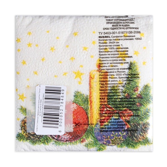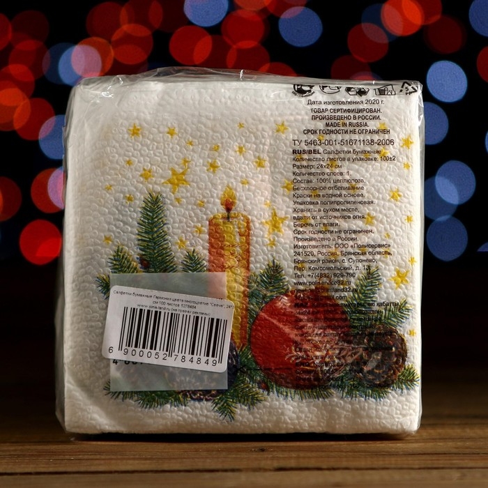 Новый год. Салфетки бумажные Гармония цвета многоцветие "Свеча", 24*24 см 100 листов