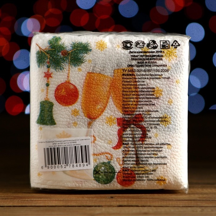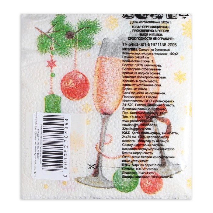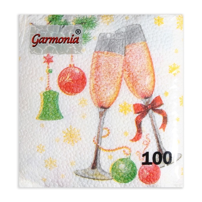 Новый год. Салфетки бумажные Гармония цвета многоцветие "Шампанское", 24*24 см 100 листов